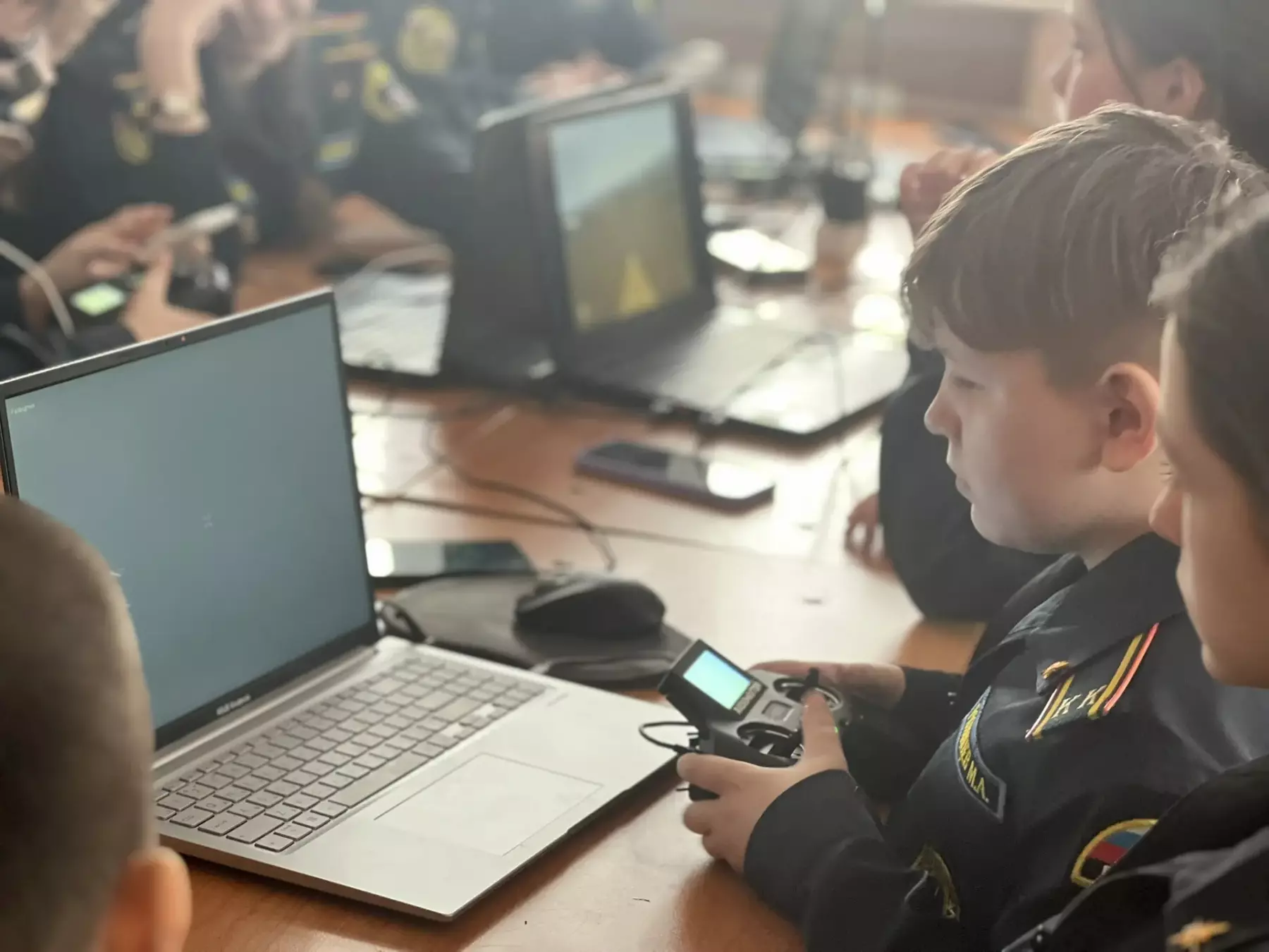 Теория сразу подкреплялась практикой: вначале школьники пробовали управлять дронами в компьютерном симуляторе и отрабатывали базовые манёвры. В завершение курса для кадетов была проведена тренировка по управлению беспилотными летательными аппаратами, где ребята смогли самостоятельно управлять настоящим дроном.